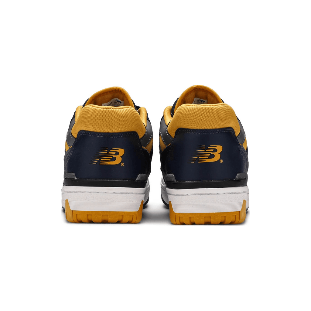 The New Balance 550 ‘Navy Gold’ construction mixes a blend of perforated leather, mesh, and synthetic textiles throughout, giving the user a lightweight experience and optimal breathability. Panels are predominantly hued in navy, paired with gold accents adorning the collars and other minor areas.