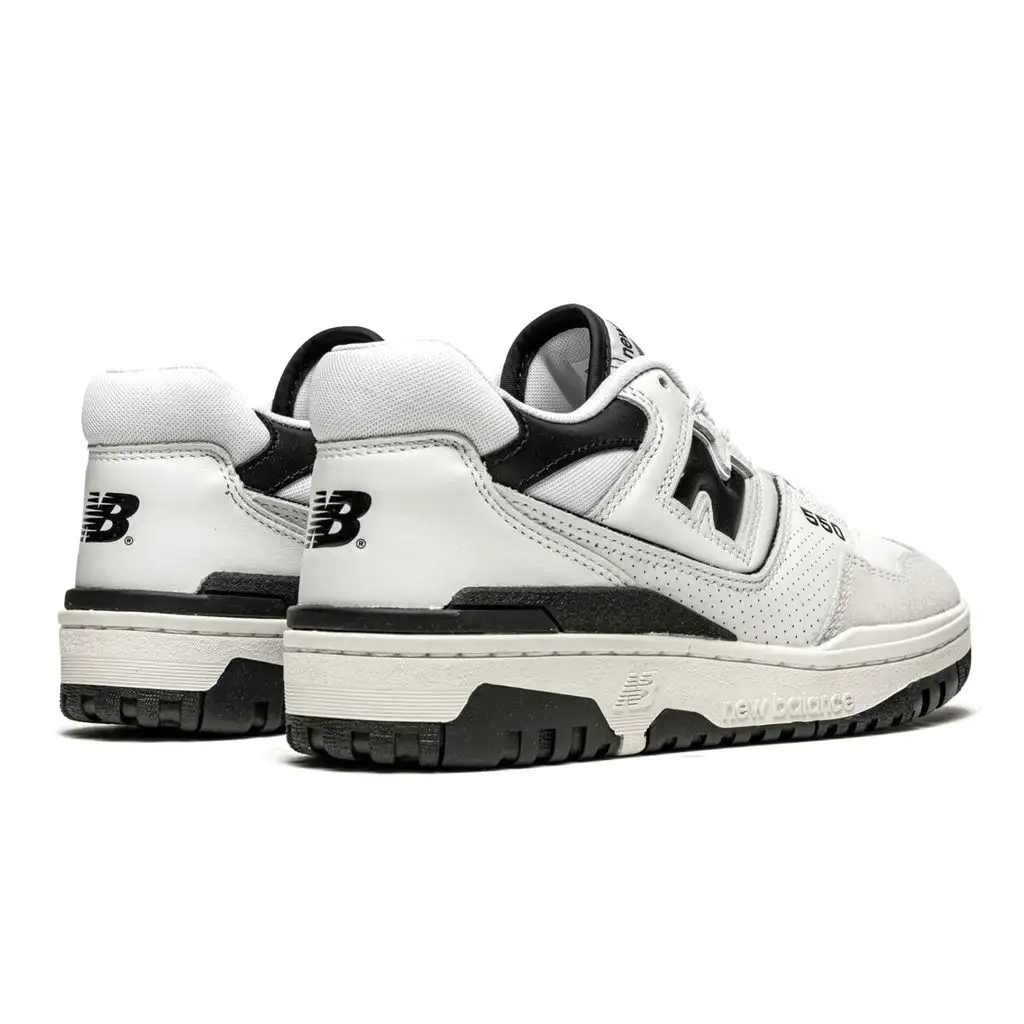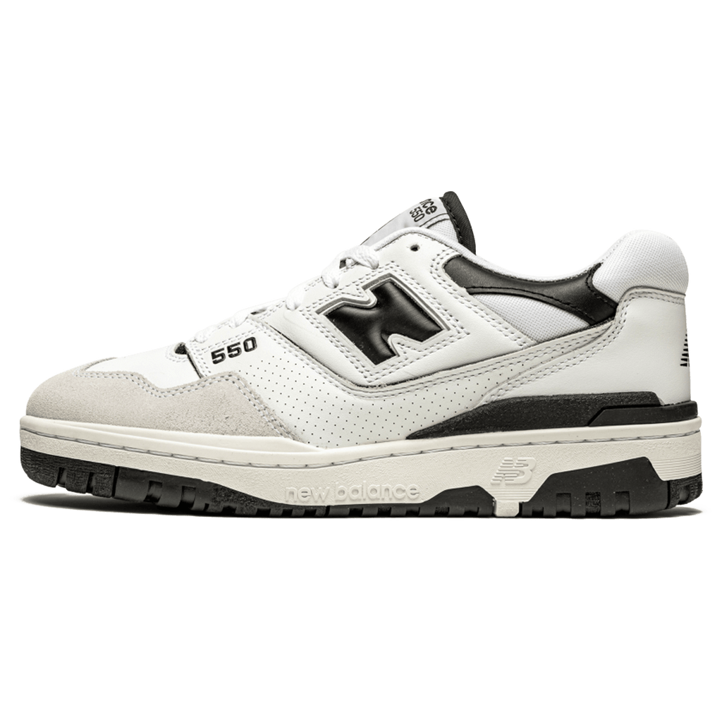 The New Balance 550 ‘White Black’ treats the ‘80s basketball shoe to a neutral two-tone colour scheme. The upper is constructed from white leather with a tonal suede toe wrap, padded mesh collar and a microperforated midfoot overlay. Contrasting black hits make their way to the sneaker’s various branding elements, which include a raised ‘N’ on the quarter panel and a classic NB logo stamped on the back heel. Lightweight cushioning is provided by an EVA wedge contained within a rubber cupsole.